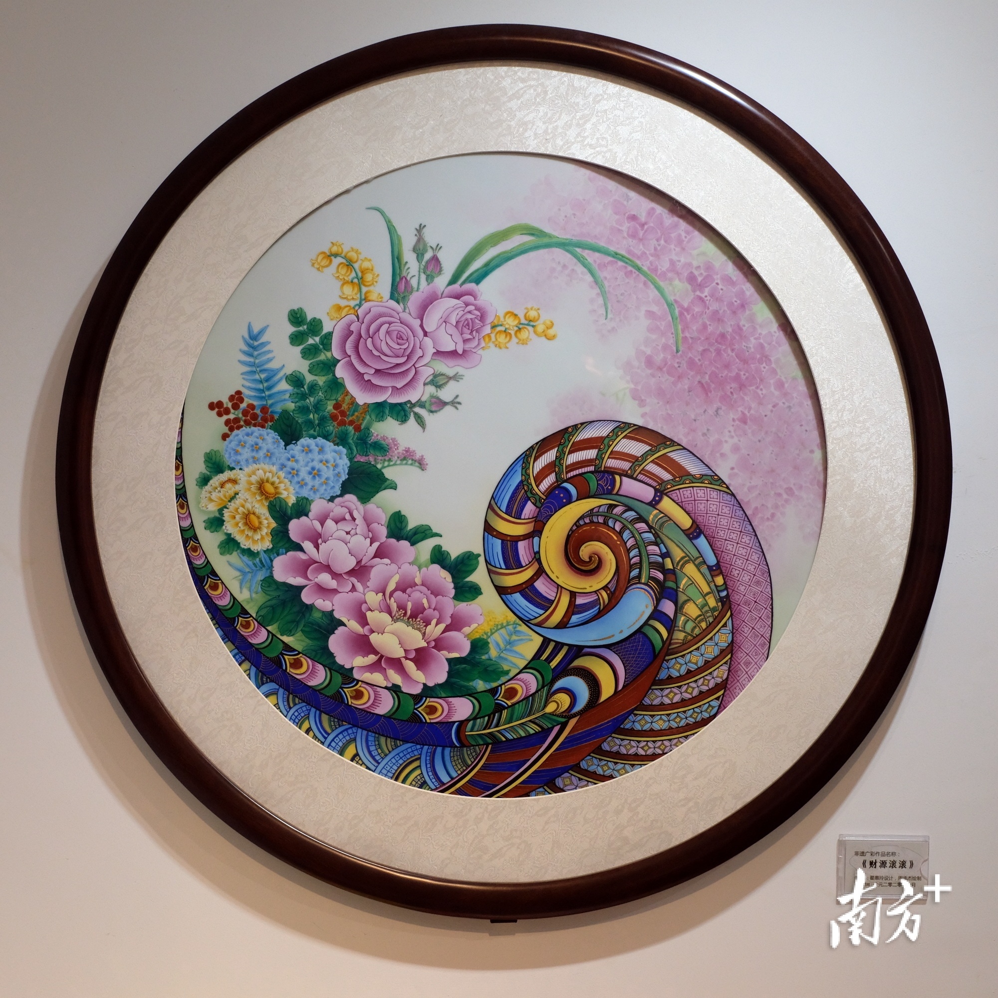 广彩作品《财路滔滔》,翟惠玲策动,周承杰画图。 游原 拍摄