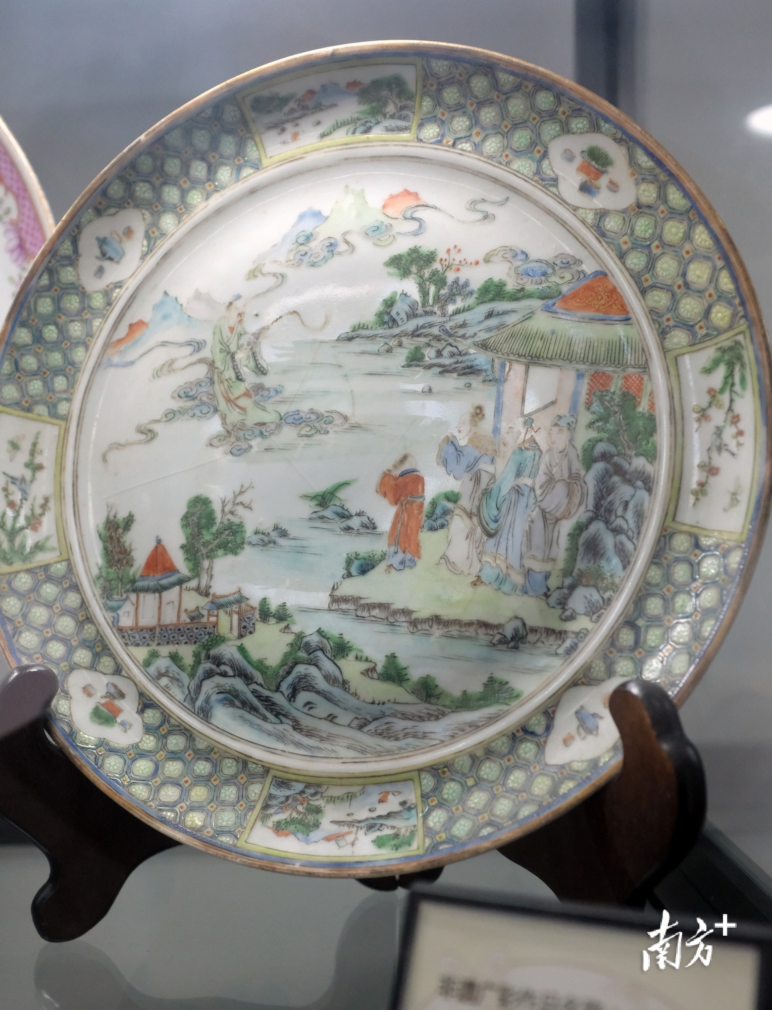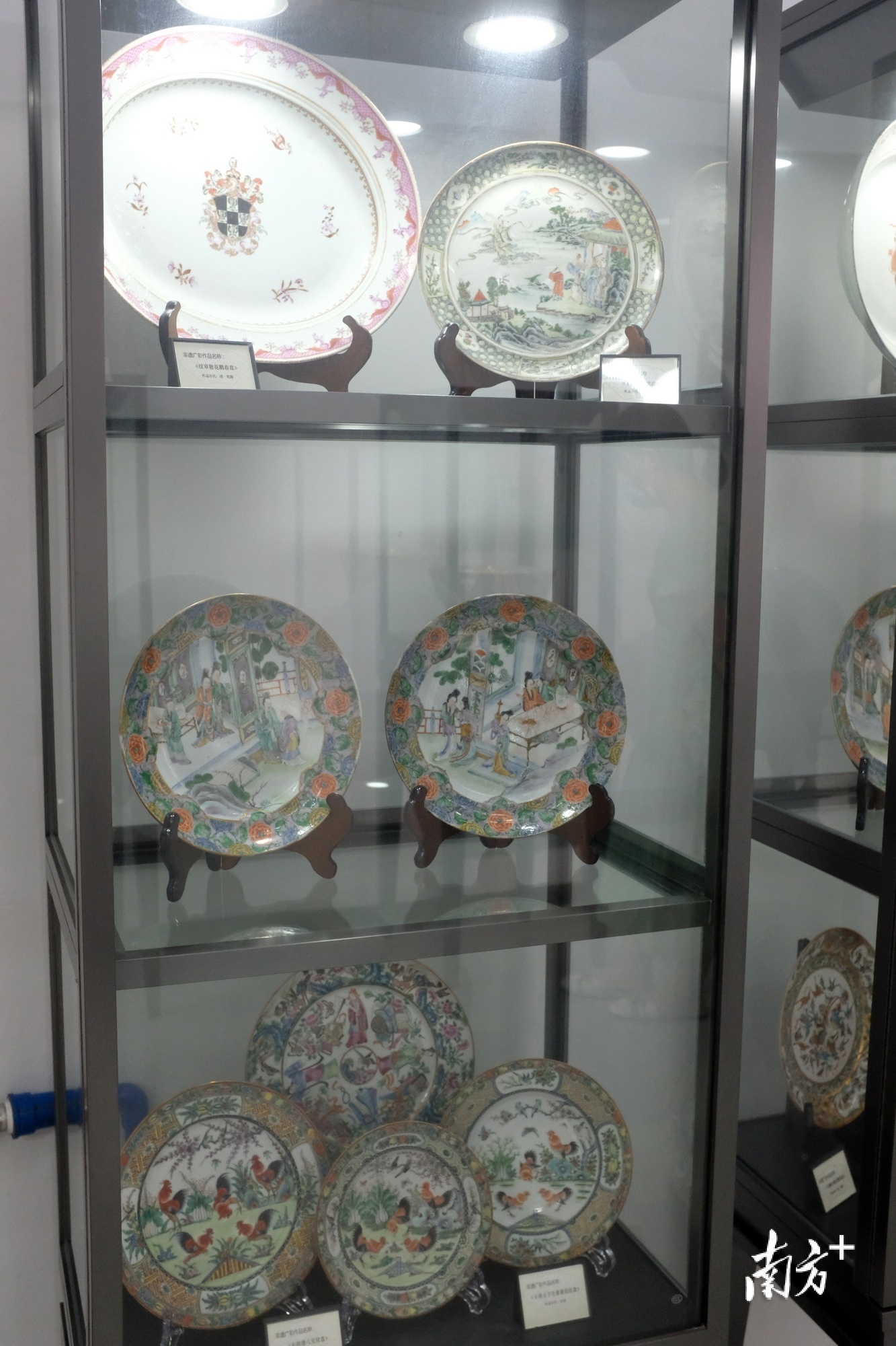 在一彩非遗广彩体验馆内,除了展有翟惠玲和周承杰师徒二东说念主的作品,还在二楼设有一间广彩古董博物馆,内部展有20余件周承杰保藏的广彩作品。这些作品是多年以来周承杰为了挖掘传统技法,从海表里网罗的古董。如今在体验馆内,这些上百年的广彩作品都不错近距离地不雅赏。
