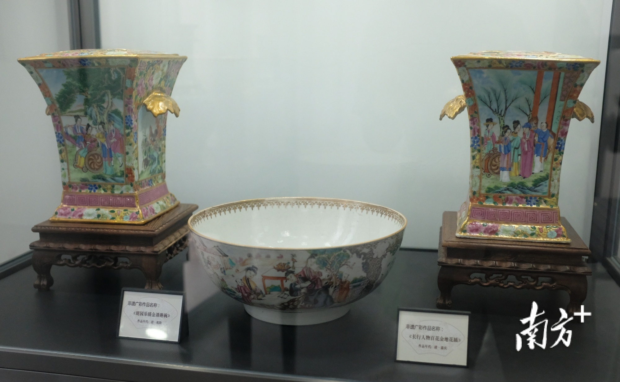 在体验馆内不错看到,职责室策动设备了多款融入广彩元素的文创家具,这些元素多从师徒二东说念主作品中索要而来,同期又融入了年青东说念主爱好的视觉策动格调,很受旅客宽宥。除此除外,职责室还开展了多项跨界贸易相助,与喜茶、点都德等餐饮企业皆集出品非遗主题的礼盒或礼品,据先容,昔时他们还将接续借力市集,坚抓立异,让广彩接续活化传承,灵通光彩。